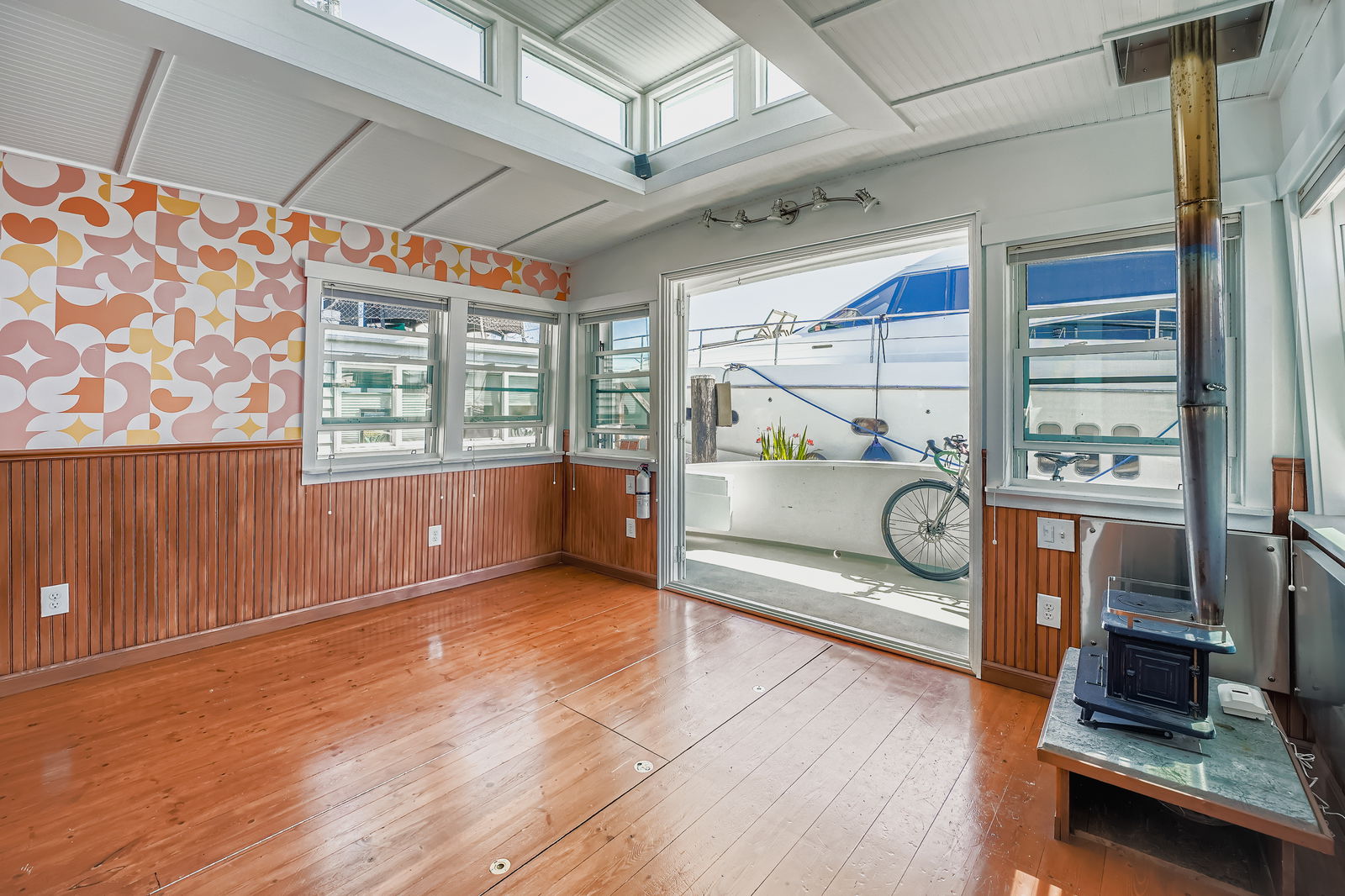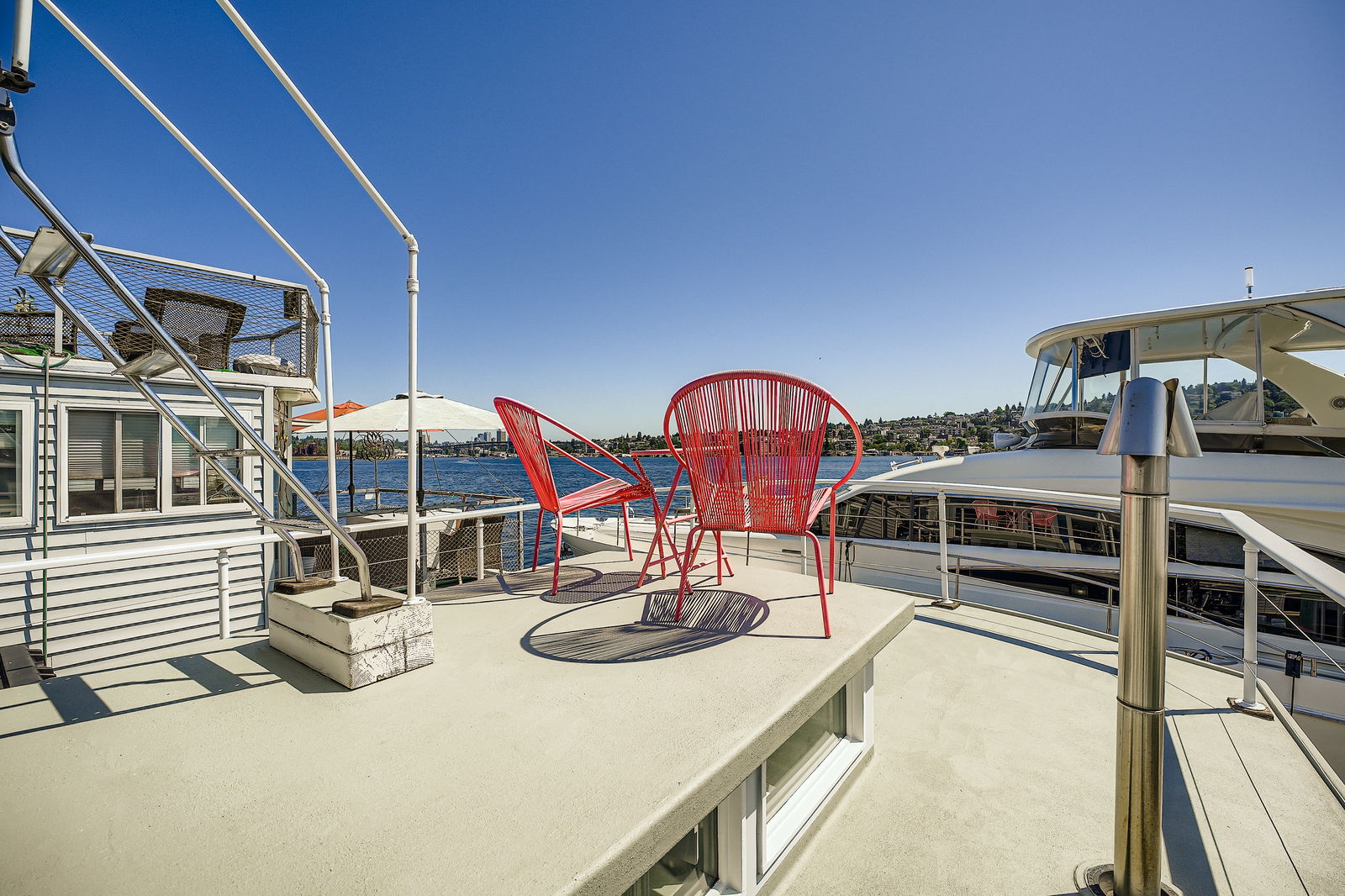 Welcome aboard this stunning two-level Seattle houseboat located at the desirable end of the dock—offering unobstructed east-facing views and an unbeatable Lake Union lifestyle. Whether you're soaking in the morning sun on the rooftop deck or relaxing on one of two covered decks, this home is your gateway to everyday serenity on the water.