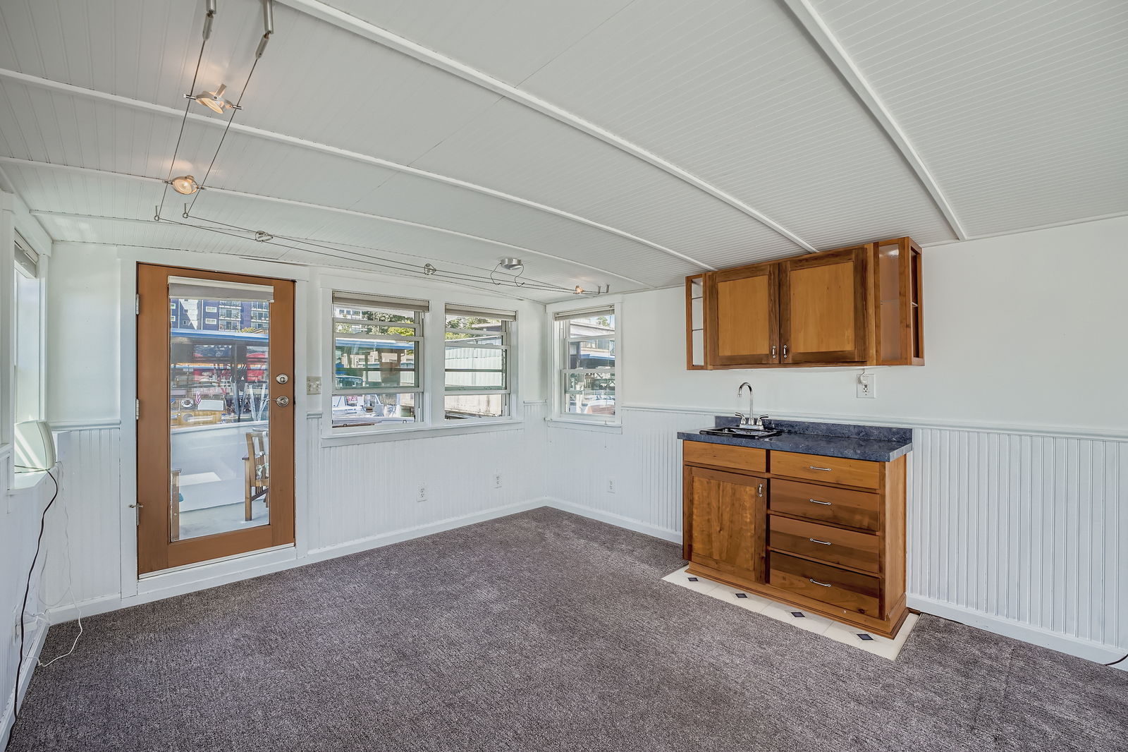 End-of-dock 1BR/1BA Seattle houseboat w/750 sq ft, rooftop deck, bonus room, 2 covered decks, updated kitchen, & panoramic Lake Union views. Slip lease $1,598/mo incl. liveaboard. Pets & rentals OK. Built 2009 by Houzer.