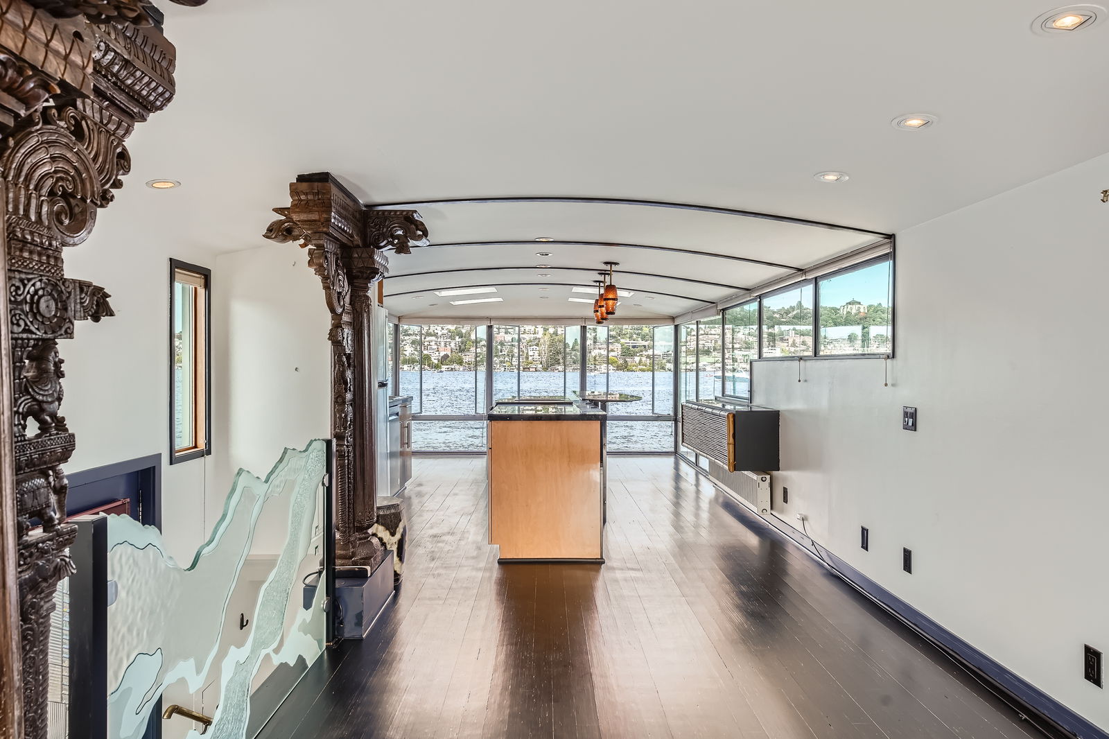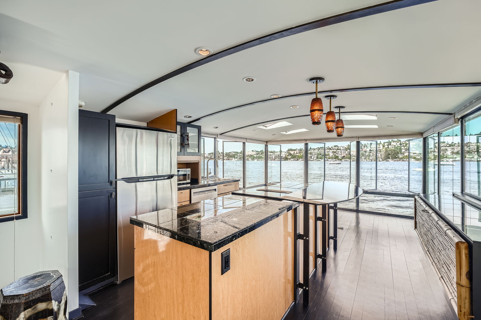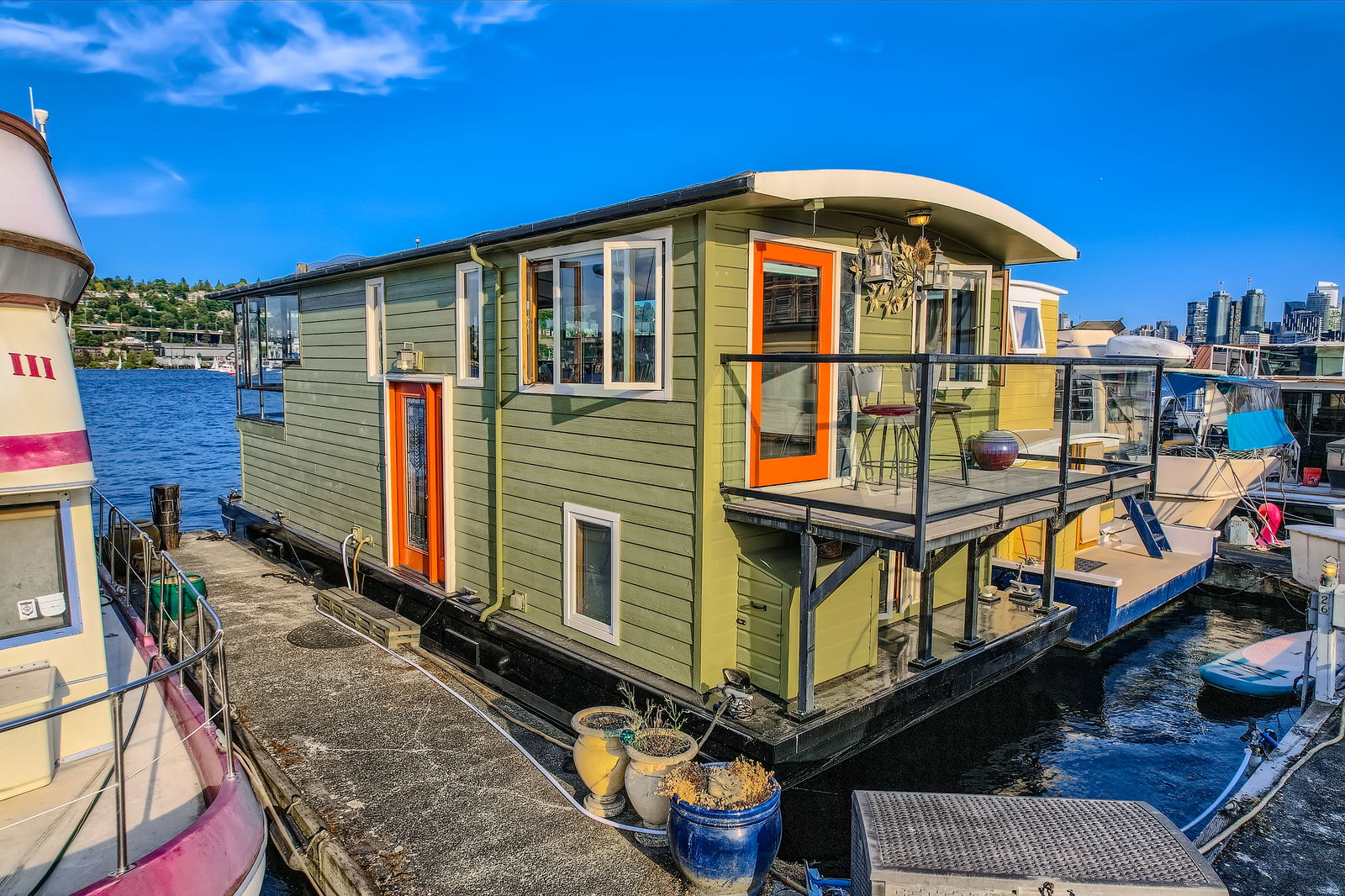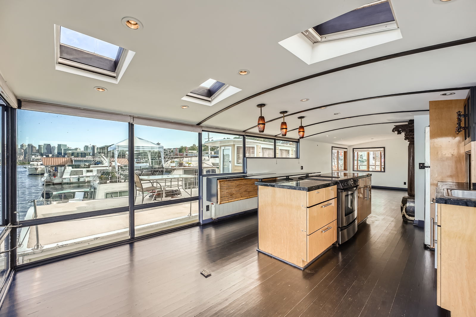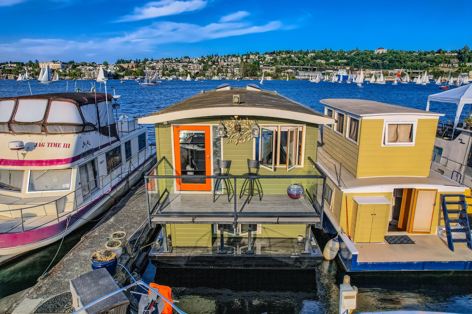 rtist-inspired 2BR/1BA housebarge on outer dock with jaw-dropping Lake Union views! Walls of windows, carved pillars, open layout, and refinished floors. Pre-inspected, pets OK, moorage incl. utilities. A rare floating lifestyle!